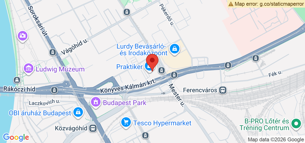 1095 Budapest, Mester u. 87. (à côté du parking Praktiker)