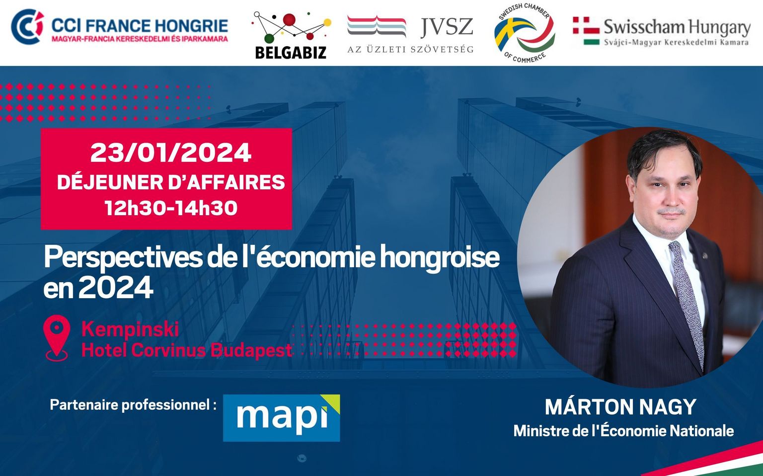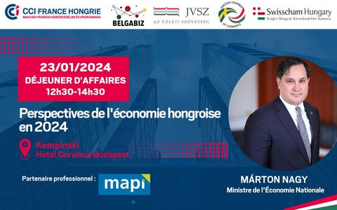 Perspectives de l'économie hongroise en 2024 Notre invité spécial M. Márton NAGY, Ministre de l'Economie Nationale. L'événement sera tenu en anglais.