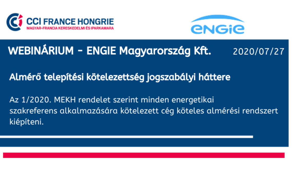COVID-19 • Rendezvény beszámolók Videó - Energetikai klub - Almérő telepítési kötelezettség jogszabályi háttere 27 július 2020 Voir en mode carouselVoir en mode mosaïqueAz 1/2020. MEKH rendelet szerint minden energetikai szakreferens alkalmazására kötelezett cég köteles almérési rendszert kiépíteni.